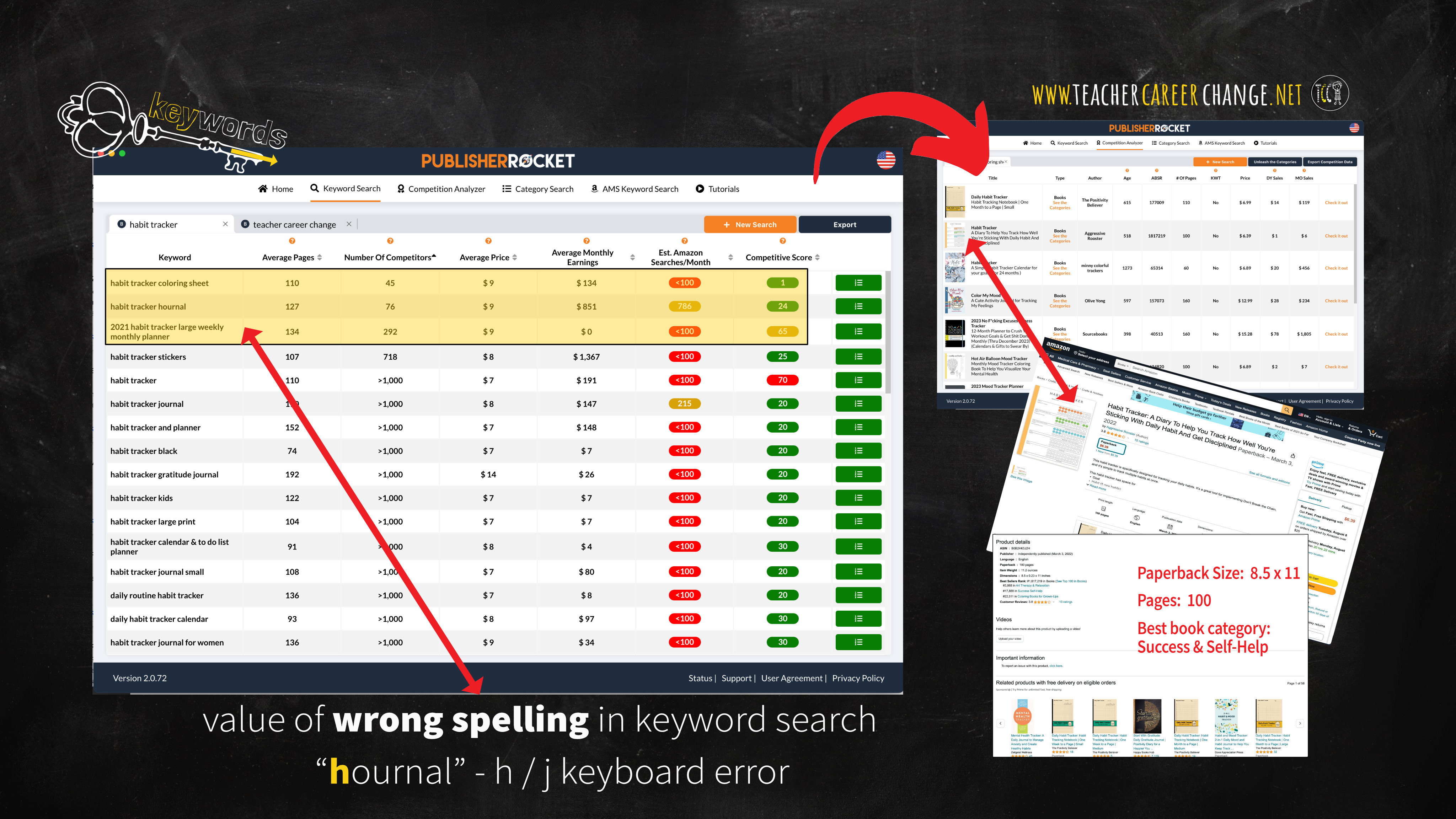 I bought Publisher Rocket years ago but did not fully use it. Now that I have a low-content book project, I tested it again and was amazed at what it gave me! When I searched amazon, it gave me a few keywords for habit tracker. Publisher Rocket gave me more, including the number of competitors, estimated monthly searches and earnings. Based on its results, I can target these keywords instead: