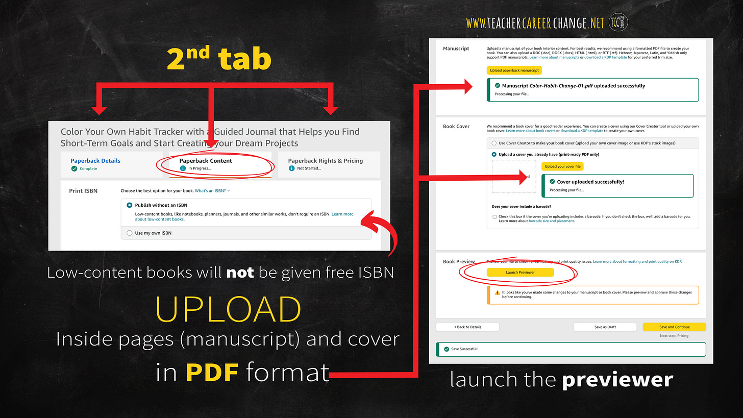 Once you complete the first tab, you can proceed to the next one where we will upload our low-content book files.